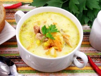 Рецепты 10 самых вкусных супов! РЕДКАЯ ПОДБОРКА! Ваши едоки будут просить еще и еще! Дома у Вас будут фанатыПоказать полностью… 1. Ароматный суп с копчёной курочкой и плавл. сыром. Что понадобится: - Копчёный окорок — 300 гр - Плавленный сыр — 3 стол ложи (у меня виола ) - Картофель — 3 шт - Морковка — 1 шт - Репчатый лук — 1 шт - Укропчик — для подачи - Соли , специй — по вкусу - Растительное масло — для жарки Переходим к приготовлению: Отварить окорок ,вынуть из бульона разделать. Мясо закинуть в бульон обратно. Далее добавить нарезанную кубиками картошку и мелко резанную/тертую морковку. Репчатый лук обжарить до золотистого цвета и добавить в суп Следом плавленный сыр Варить при слабой температуре 15 — 20 мин. или чуть более до готовности и полного растворения сыра. При подаче посыпать мелко нарезанным укропом или другой любимой зеленью. 2. Гороховый суп с охотничьими колбасками и плавл. сыром. Что понадобится: Горох — 1 стакан Картофель — 3 шт Морковка — 1 шт Репчатый лук — 1 шт Колбаски охотничьи — 5 шт Плавленный сыр — 1 шт (или 2 стол ложки ) Зеленушку (укроп/петрушка) — по желанию Соли, специй — по вкусу Растительное масло — для жарки Всего в расчете на — 3 литра Горох замочить хотя бы на 2 часа, лучше на ночь. Переходим к приготовлению: Воду подсолить. Когда вода закипит, высыпать горох ,варить около 30 мин. постоянно снимая пену, добавить картошечку. Готовим зажарку: Мелко порезать репчатый лук, морковь мелко нарезать/натереть, зажарить не до конца, добавить нарезанные как удобно колбаски кружком/кубиком. Добавить зажарку в кастрюлю к гороху, туда же картошечку и плавл. сыр. Варить до полного расплавления сыра. По желанию во время подачи, добавить зелень. 3. Гороховый супчик с курочкой и грибами Что понадобится: Куриное филе — 300 гр Грибы — 150 гр (у меня шампиньоны ) Горох — 0,5 стакана (заранее замоченной в воде на ночь ) Картофель — 2 шт Морковка — 1 шт Репчатый лук — 1 шт Горчица — 1 чайная ложка Куркумы — на кончике чайной ложки (по желанию ,для более жёлтого цвета ) Растительное масло — для жарки Соли, специй — по вкусу Зеленушку (укроп/петрушка) — по желанию. Замочить горох хотя бы за пару часов. Переходим к приготовлению: Горох вместе с куриной грудкой отправить варится в подсоленную кипящею воду примерно на 30мин. Небольшими кусочками порезать грудку. Картошечку нарезаем кубиками и кладем в бульон к гороху с куриной грудкой. Варим минут около 15 мин. Готовим зажарку: Мелко порезать репчатый лук, морковь мелко нарезать/натереть. Зажарить овощи до румянца. Добавить грибы, горчицу и тушить на маленьком огне около 5-8мин. Перекладываем зажарку в бульон, добавляем куркуму, солим, перчим. Варим супчик ещё в районе 10мин. Снять с конфорки, дать настояться. По желанию во время подачи, добавить зелень. 4. «Харчо » с курицей Что понадобится: Куриная грудка — 300 гр Морковка — 1 шт Репчатый лук — 1 шт Рис — 100 гр Чеснок — 3 зубчика Томатная паста — 2 стол ложки Соль и специи — по вкусу Зелень — небольшой пучок Масло растительное — для жарки Всего в расчете на — 3 литра. Переходим к приготовлению: Куриную грудку режем на кусочки. Подсаливаем воду. Варим рис вместе с куриной грудкой. Трем морковь на крупной терке или тонкими полукольцами, репчатый лук мелкими кубиками. Обжариваем, добавляем томатную пасту, резанный чеснок, мелко резанную зелень. Чуть тушим. Добавляем зажа
